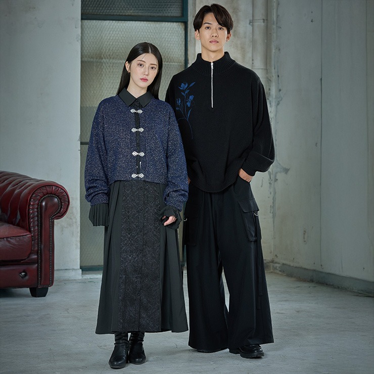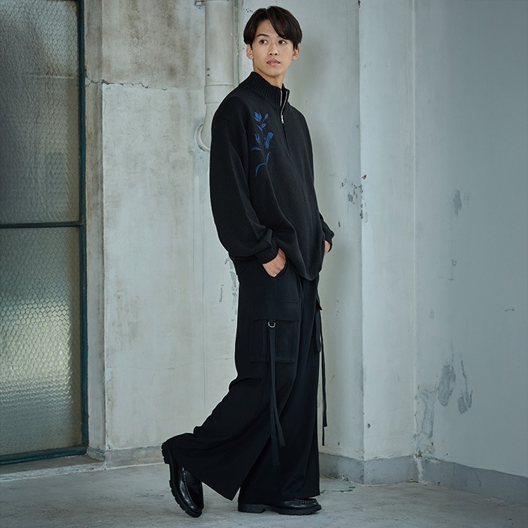 メンズ 花刺しゅうハーフジップニットプルオーバー(SUREVE BLACK)