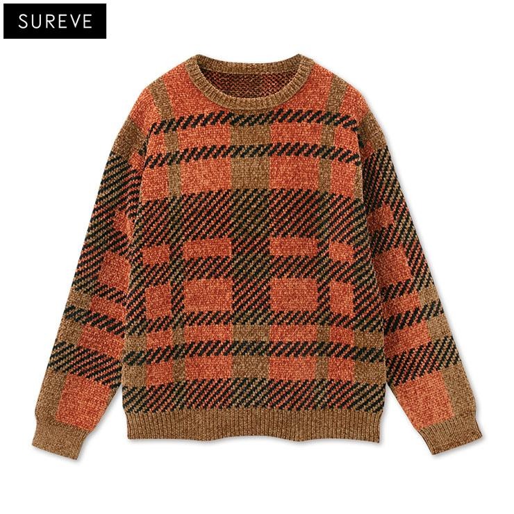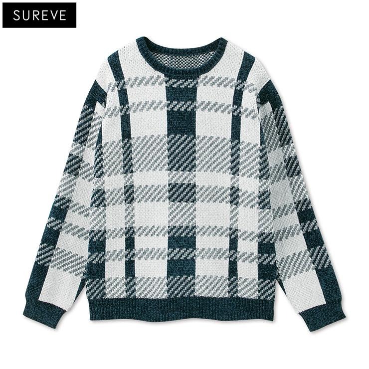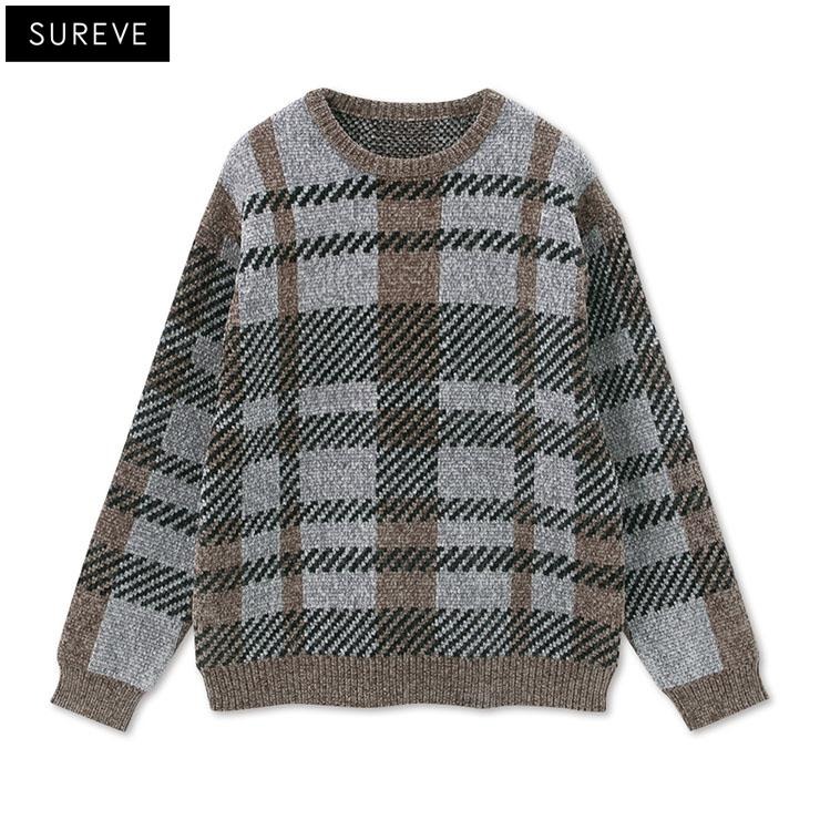 メンズ【M~LL】 チェック柄ニットプルオーバー(SUREVE)