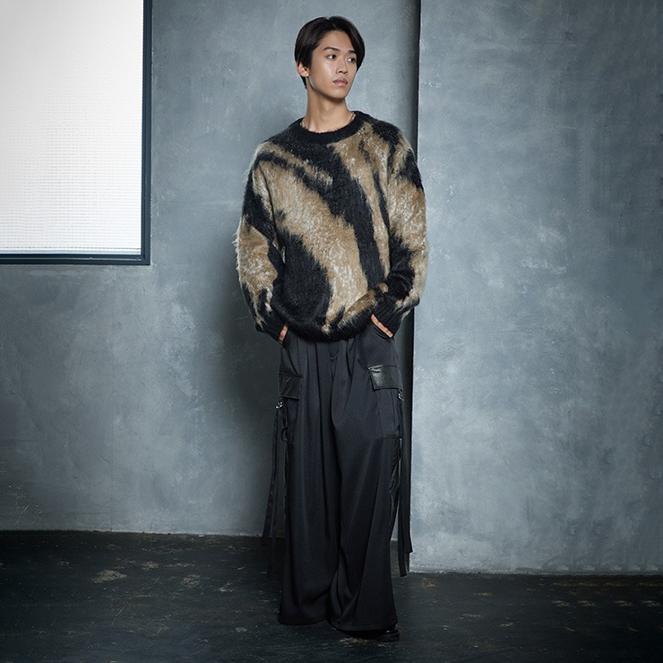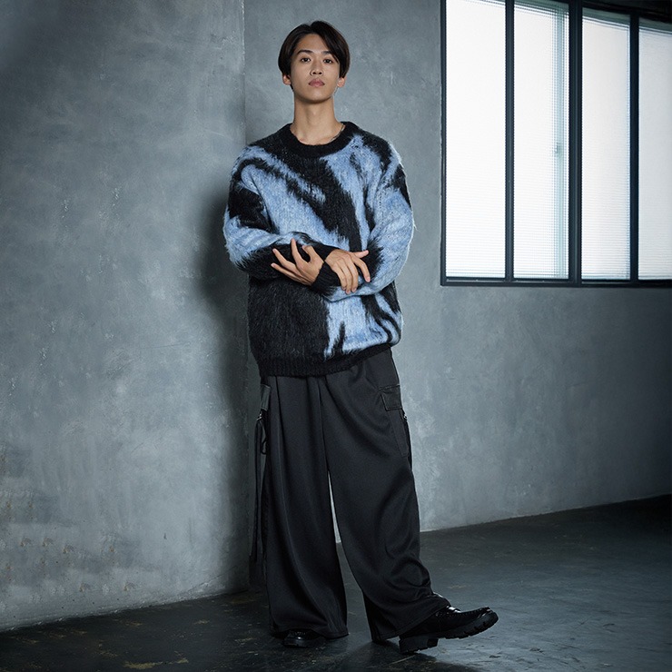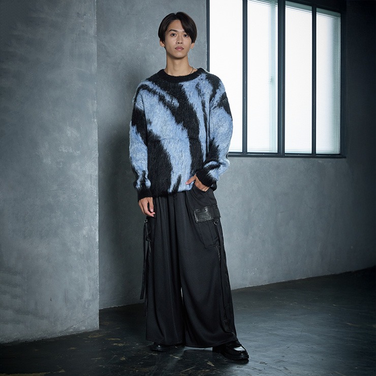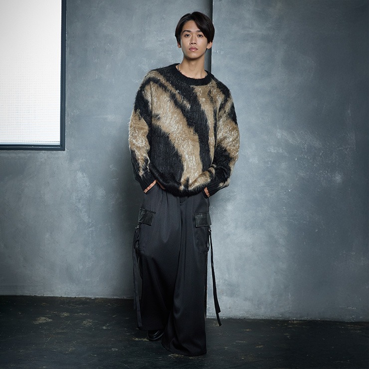 流れるようなニュアンス柄が印象的なニットプルオーバー。