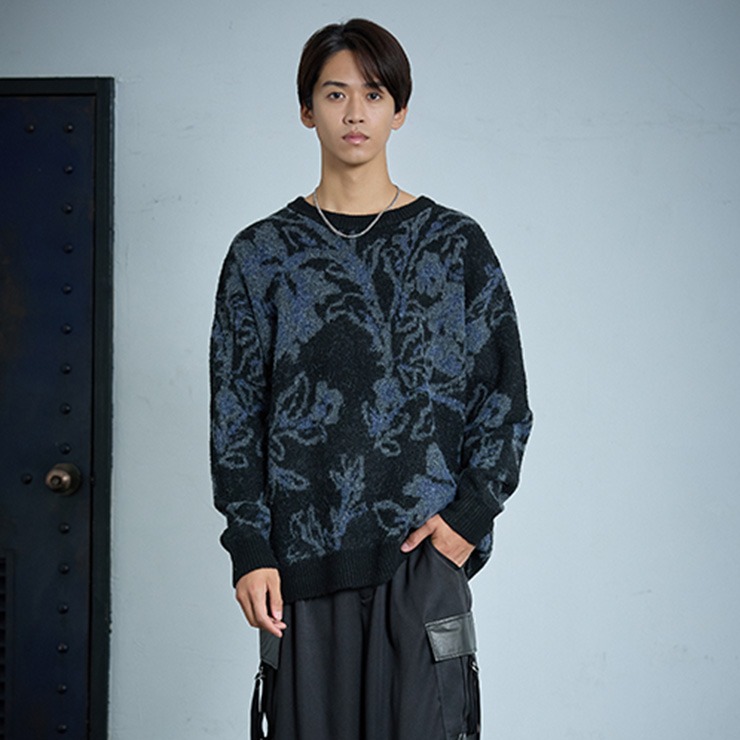 メンズ 花柄ニットプルオーバー (SUREVE BLACK)