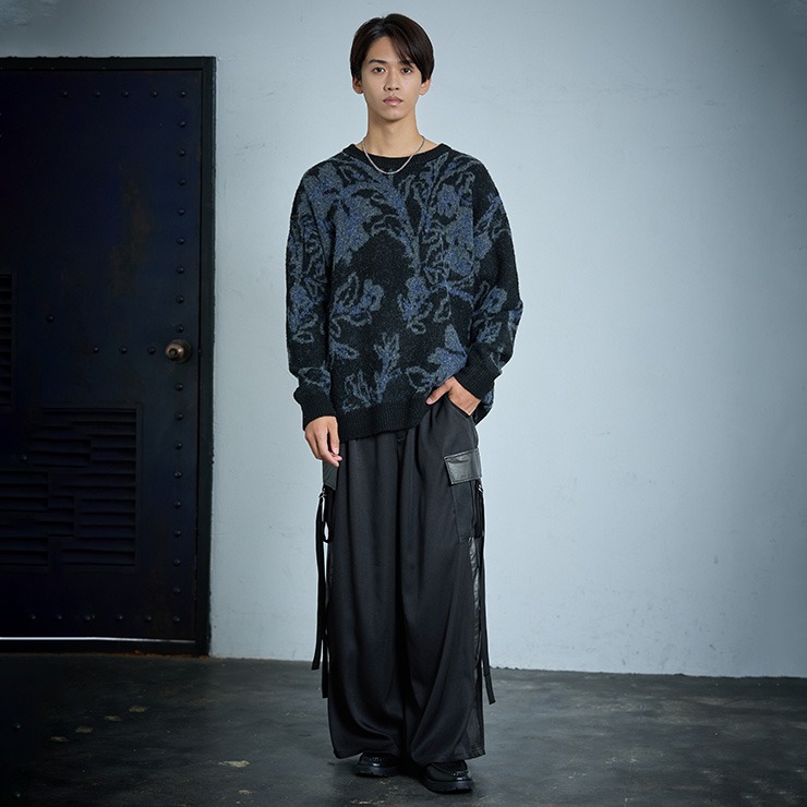 フラワーパターンが存在感を放つニットプルオーバー。