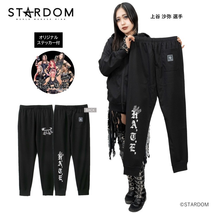 明るく、激しく、新しく、そして美しく!輝く女子プロレス団体「STARDOM」の人気ユニット「H.A.T.E.(ヘイト)」とのコラボパンツです。