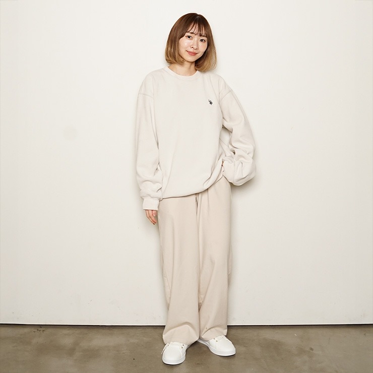 胸元にはブランドを象徴するワンポント刺繍を施し、デイリーから週末のお出かけまで、幅広いシーンで活躍する一枚です。