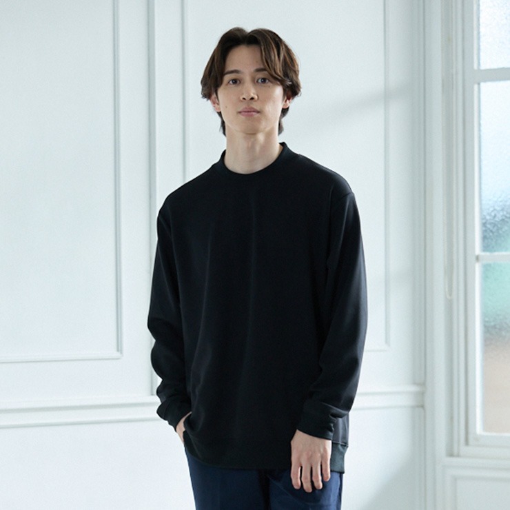滑らかな表面感と、上品な光沢を備えたポンチ素材の長袖Tシャツ。