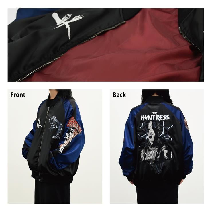 フロント、バック、袖に刺繍の入ったデザインになっています。