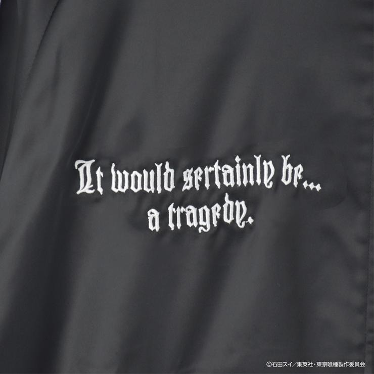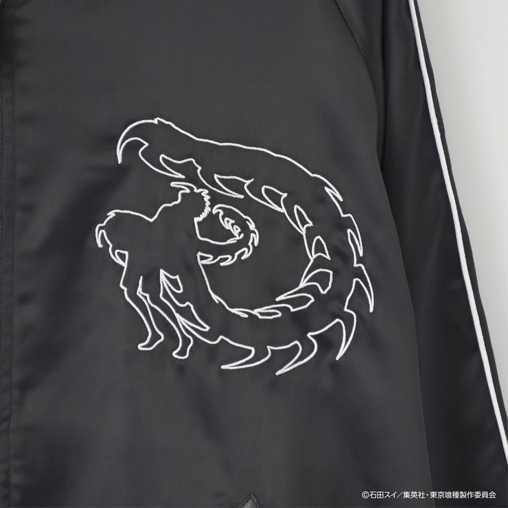 前身にはカネキの半赫者のシルエットが刺繍されており、半喰種として数奇な運命をたどるカネキをモチーフにした総刺繍スカジャンとなっています。