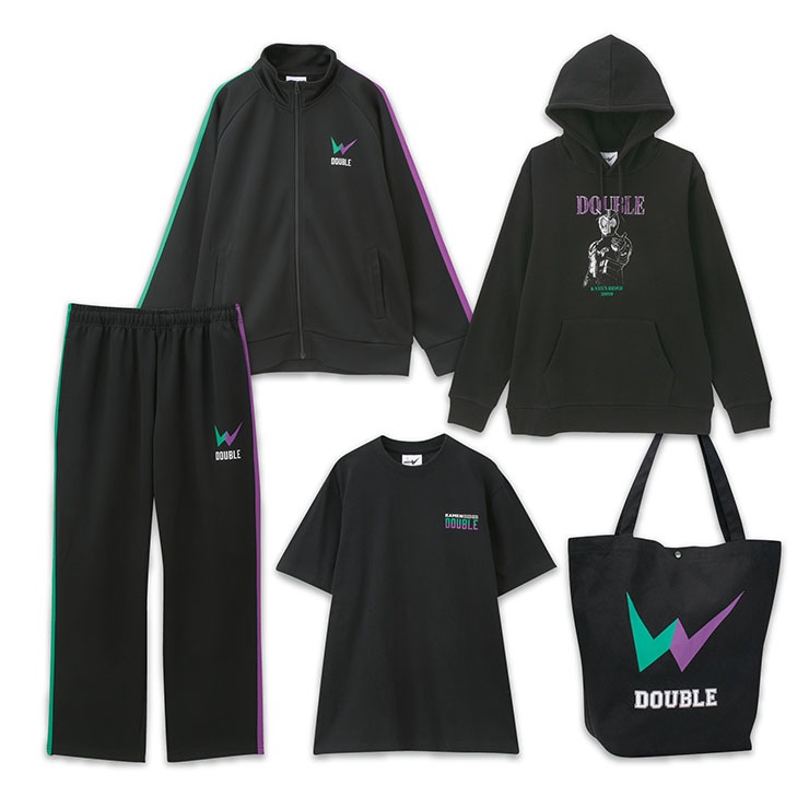 『仮面ライダーW』のTシャツ・ジャージ・ロングパンツ・プルパーカ・トートバッグが入った5点セットです。