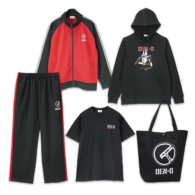 『仮面ライダー電王』のTシャツ・ジャージ・ロングパンツ・プルパーカ・トートバッグが入った5点セットです。