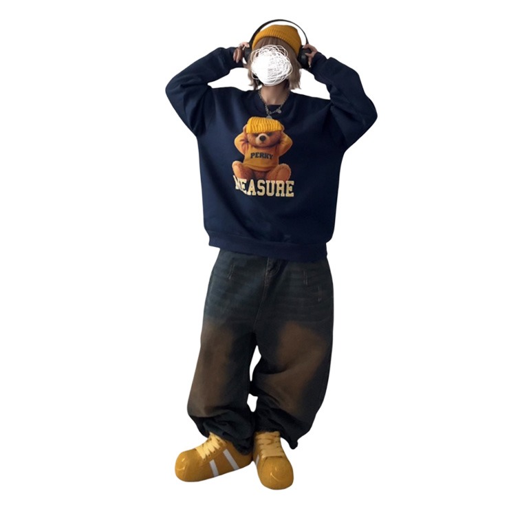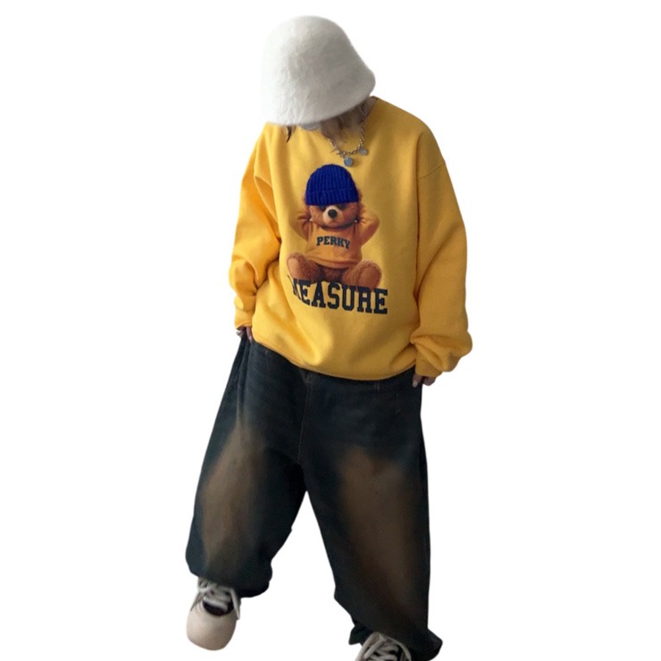 異素材ニットを貼り付けたクマがかわいいプルオーバーです!