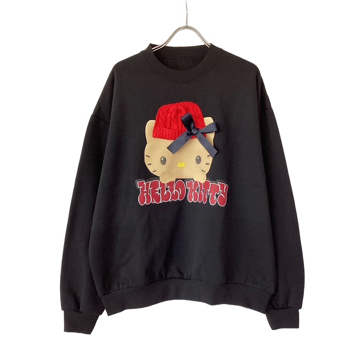 ニット帽を貼り付けたキティの裏起毛プルオーバーが登場!