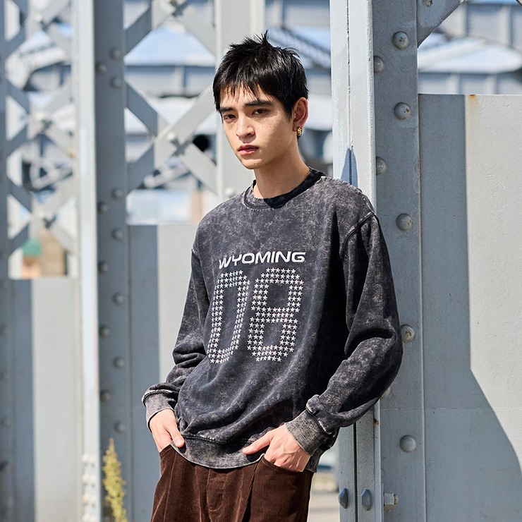 トレンドのケミカル加工を施したナンバリングデザインの裏起毛プルオーバーが登場!