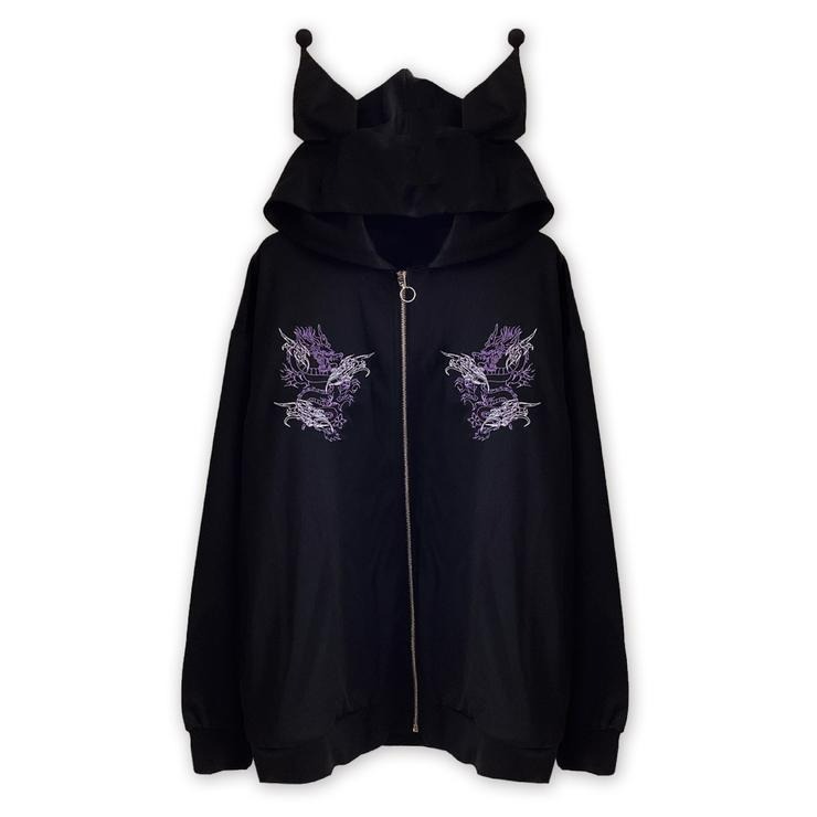 クロミをイメージした耳付のフードが特徴のジップパーカです。