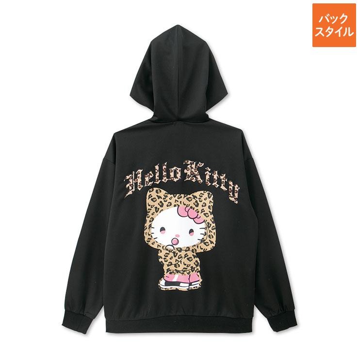 左胸には、ロゴ刺繍、フード裏はヒョウ柄になっていて、後ろのヒョウ柄キティもポイントに。