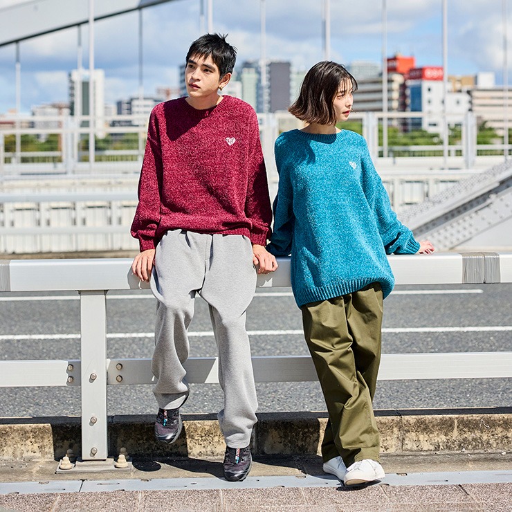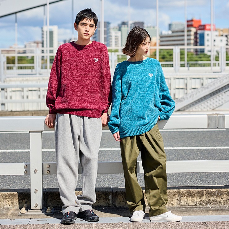 ハートロゴが刺しゅうされたベロアモール素材のニットプルオーバーが登場!