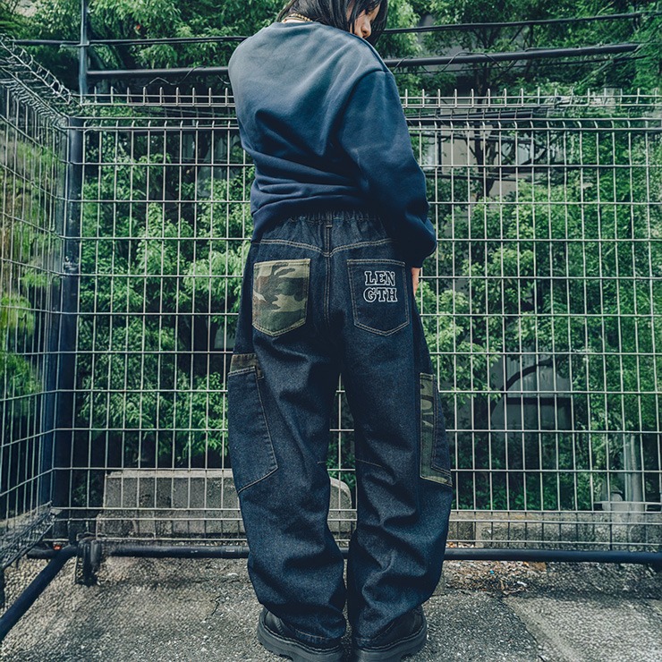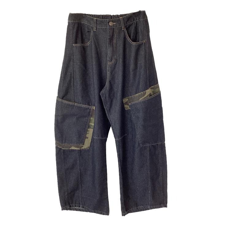 迷彩柄をアクセントにしたバレルレッグパンツです!