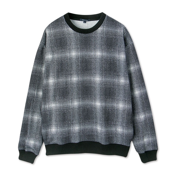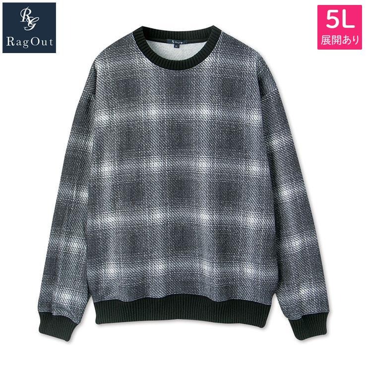 メンズ【3L~5L】 オンブレチェック柄クルーネックトレーナー(RagOut)