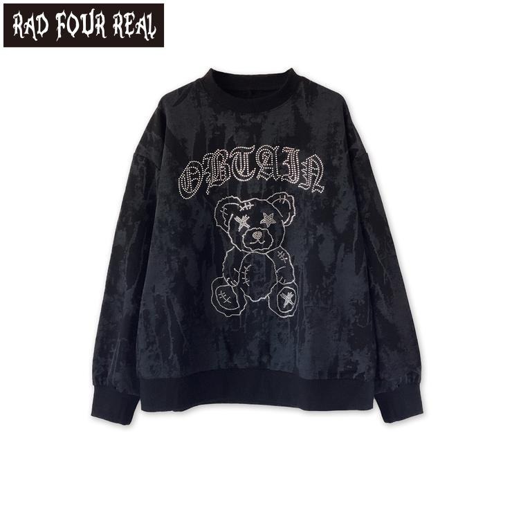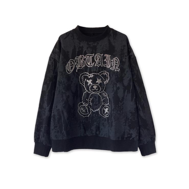 人気モチーフのくまをラインストーンで表現したプルオーバー。