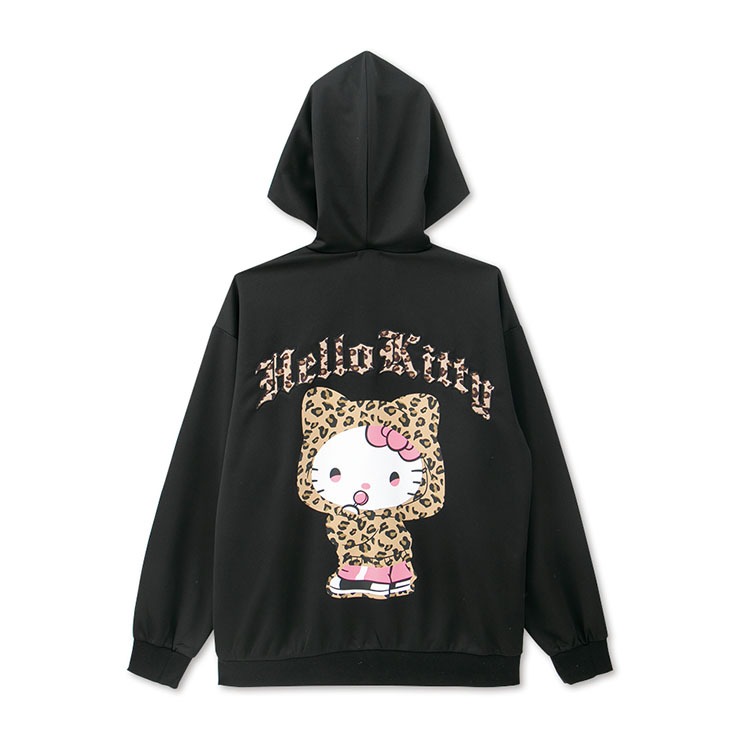 左胸には、ロゴ刺繍、フード裏はヒョウ柄になっていて、後ろのヒョウ柄キティもポイントに。