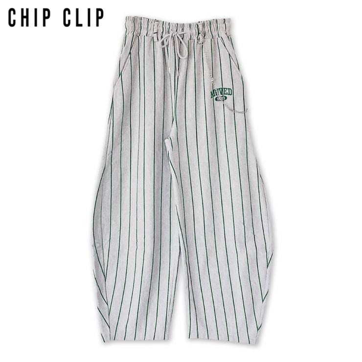 チェーン付き×ストライプ柄でコーディネートの主役になるスウェットパンツです。