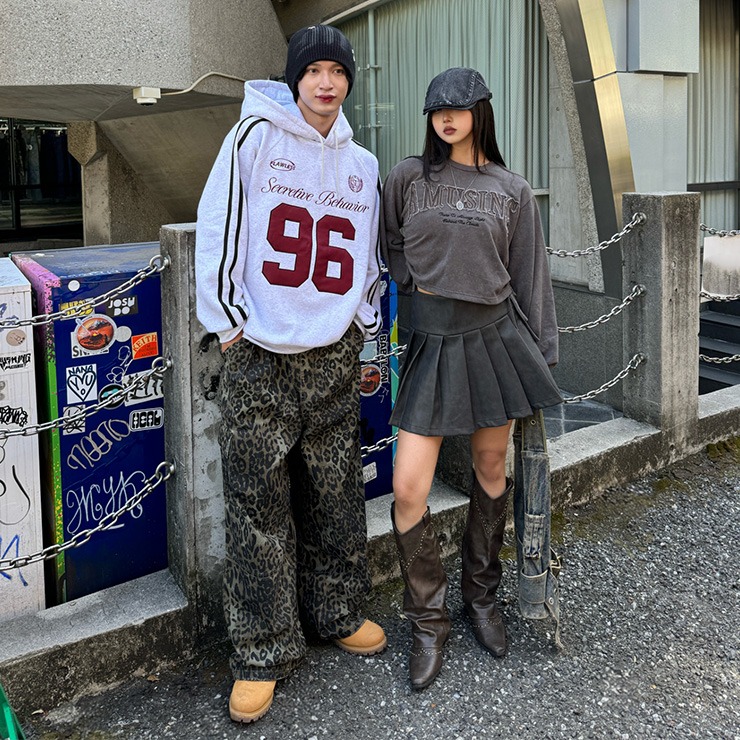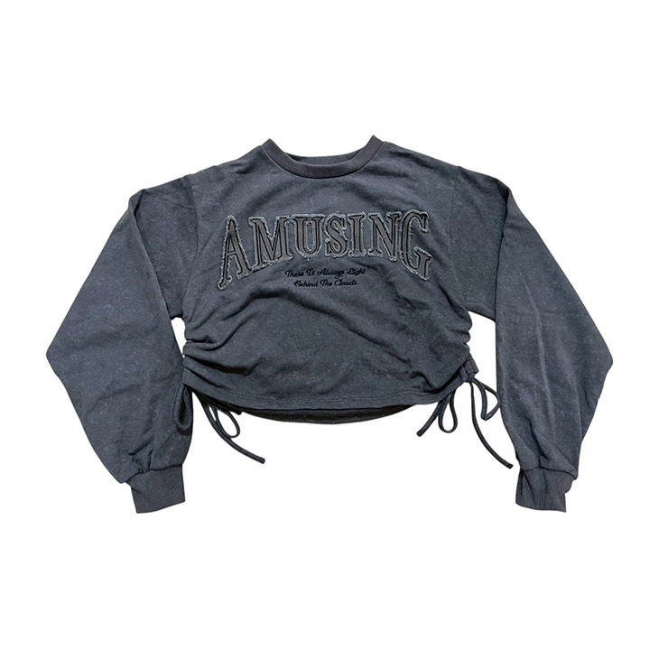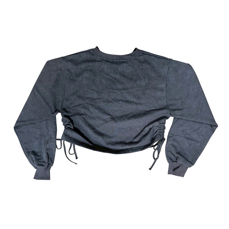 ピグメント風の総柄プリントが施された脇ドロストトップスです!