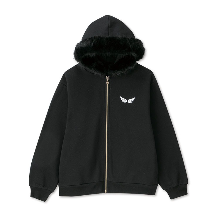 後ろのキャラとフード口のファーが可愛いジップパーカ。