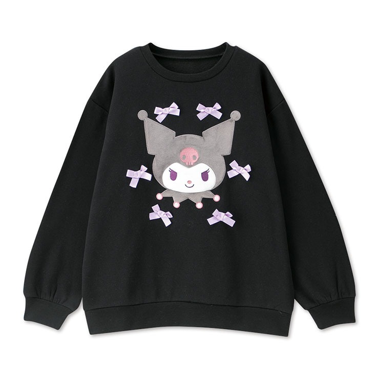 フロントの可愛いお顔の回りにサテンリボンが施されたトレーナー。