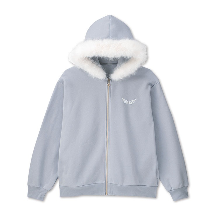 後ろのキャラとフード口のファーが可愛いジップパーカ。
