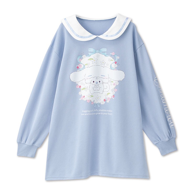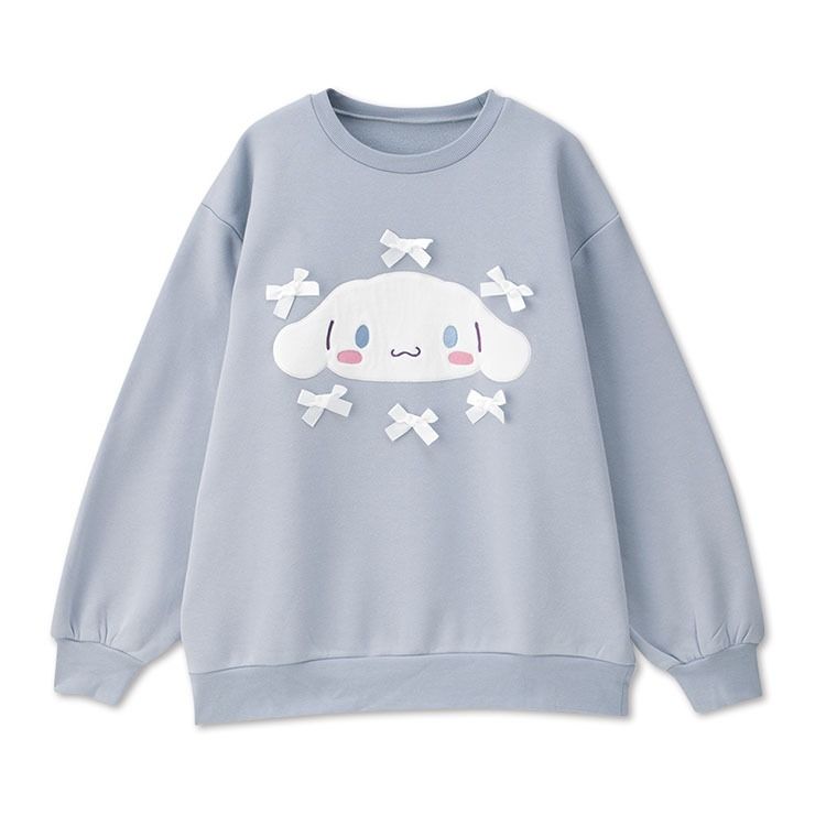 フロントの可愛いお顔の回りにサテンリボンが施されたトレーナー。