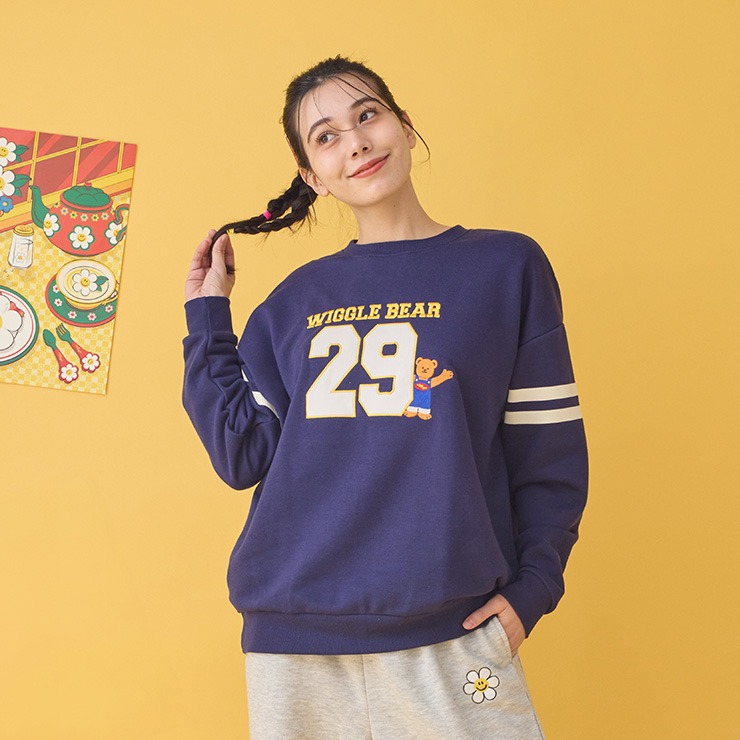 ナンバリングの中にひょっこり現れる Wiggle Bearが可愛いプルオーバー。