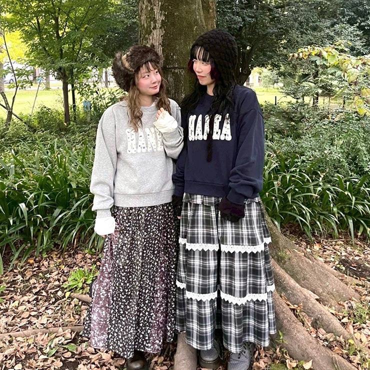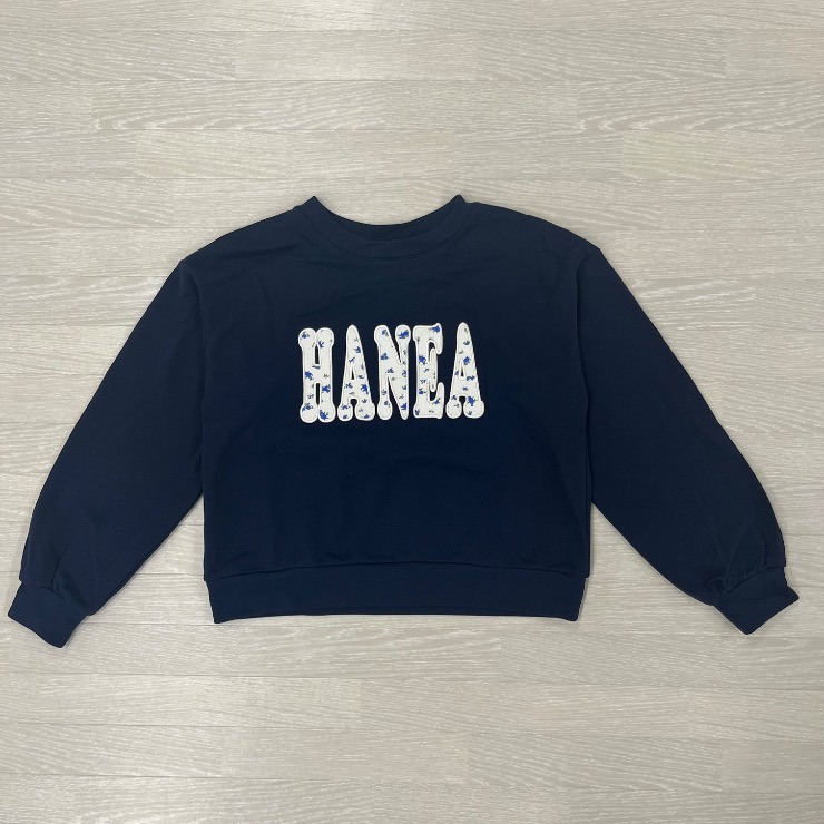 花柄の発砲ロゴが存在感のあるプルオーバーです。
