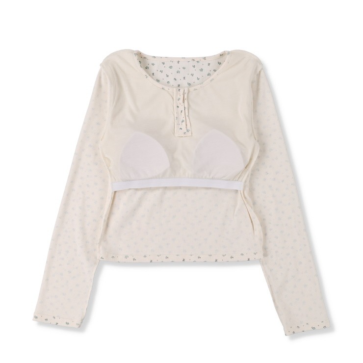 小さな花柄が可愛らしい、カップ付きのヘンリープルオーバーです。