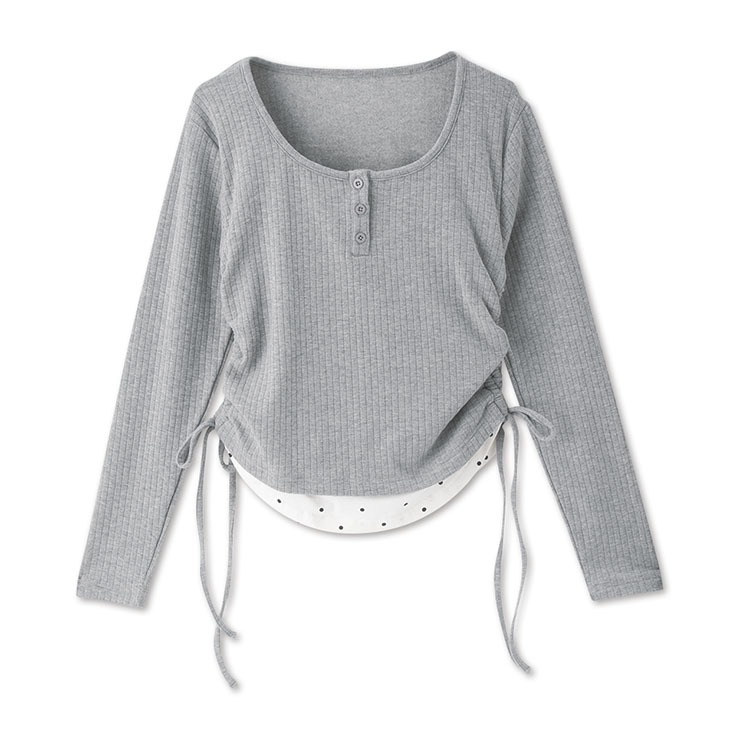 シンプルながらトレンド感あるドット柄の裾の切り替えが映える1着です◎