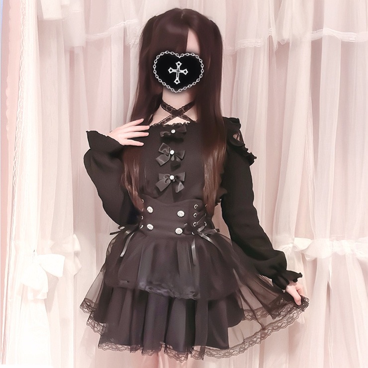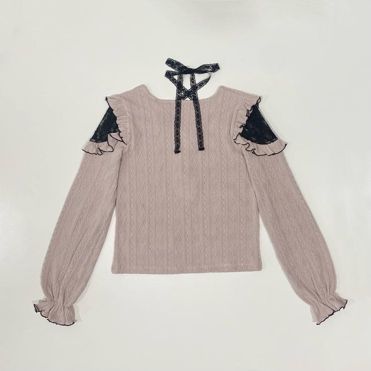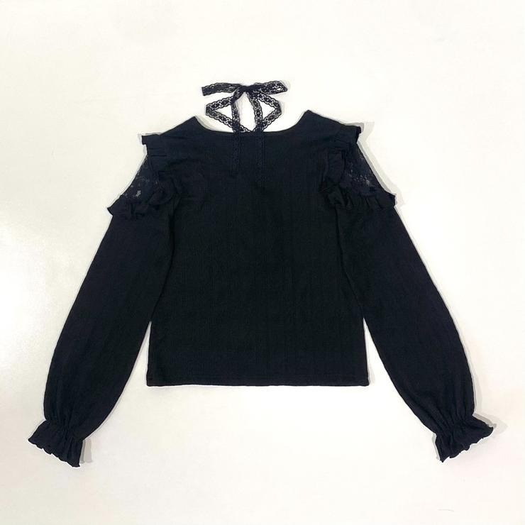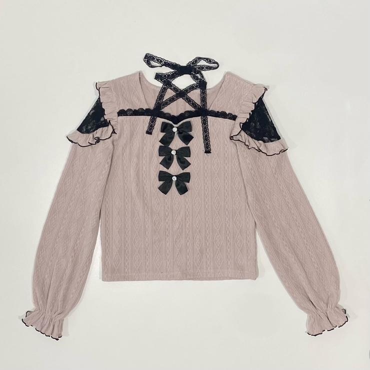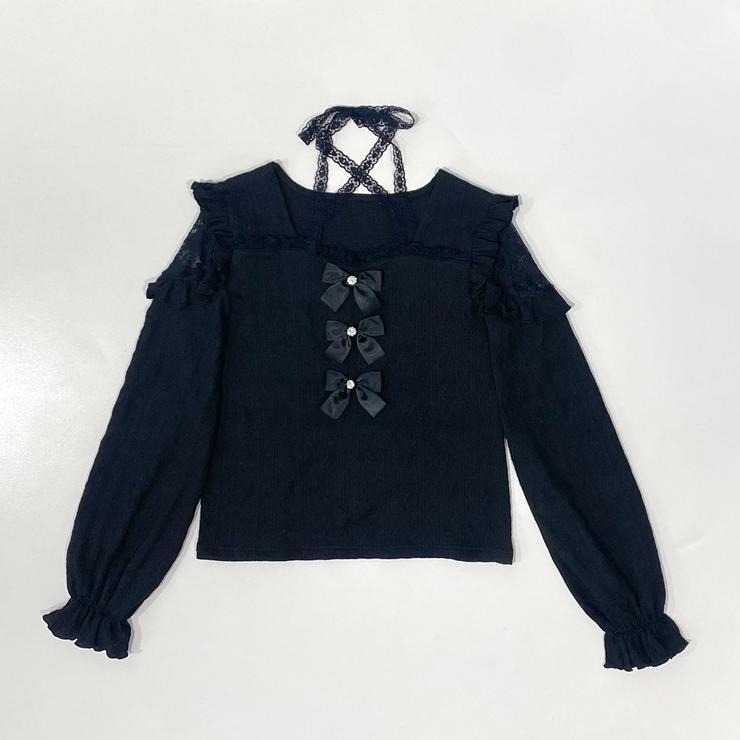 チョーカー風レースと、前の3連リボンが華やかなカットソー。