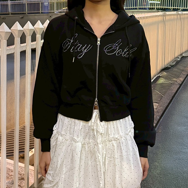フロントのラインストーンロゴがポイントでトレンド感抜群。