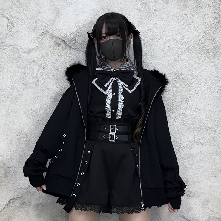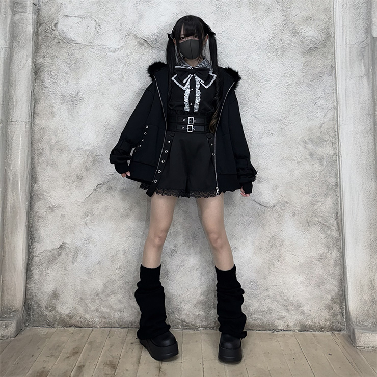 レディース【S~L】 フードジップパーカ(えすちゃん×majoretty) ブラック 213 ブラック 213