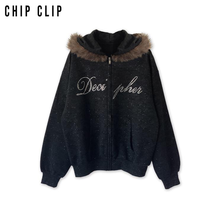 きらきら輝く細かなラメデザインと、ラメロゴが可愛いMizukiコラボのジップパーカ。