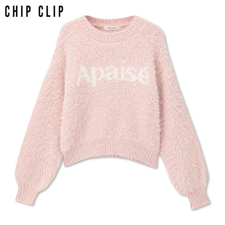 ふわふわフェザーニットに大きめロゴが映える、大人可愛いプルオーバー。
