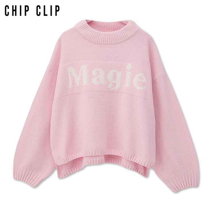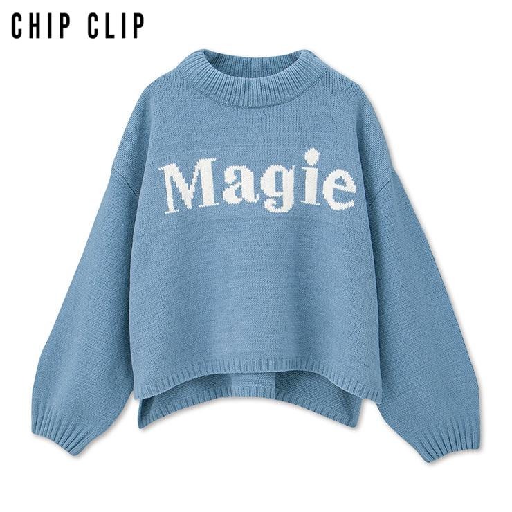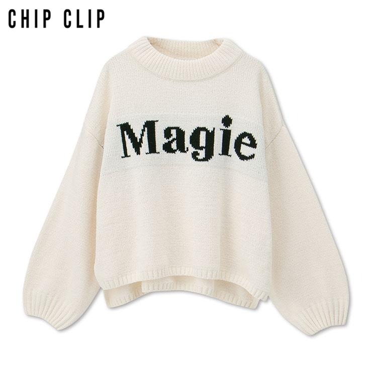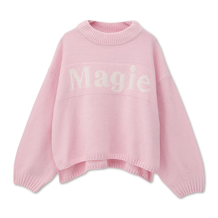 大胆な「Magie」ロゴが目を引く、シンプルながら存在感のあるニットプルオーバー。