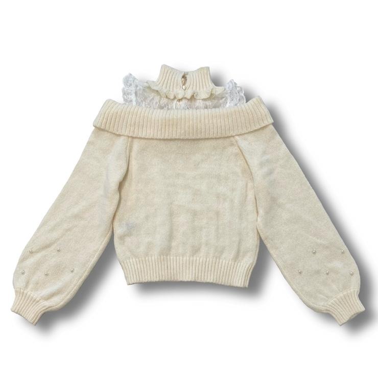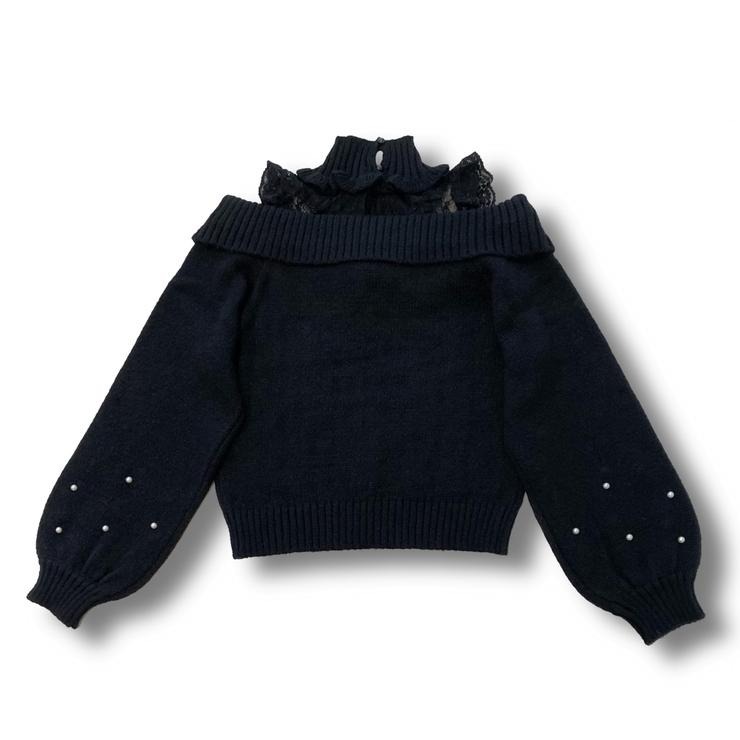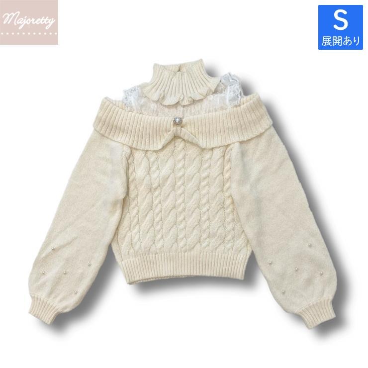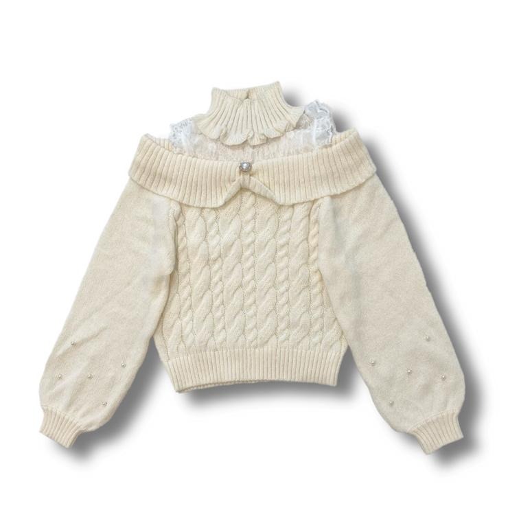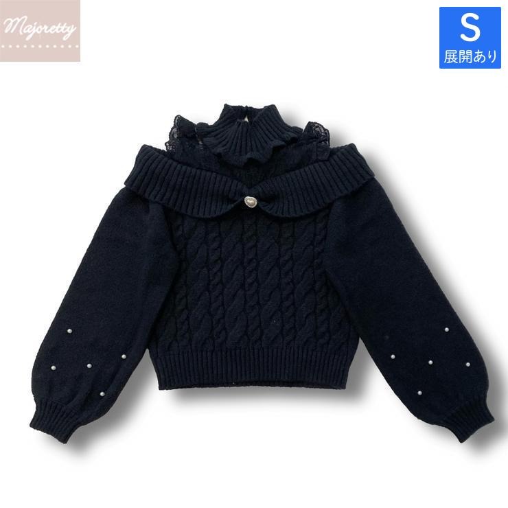胸元のリボン風デザインがポイントのケーブル柄ニット