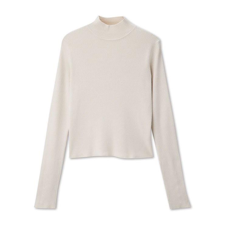 首元に沿うボトルネックが顔周りをすっきり見せてくれるのも◎
