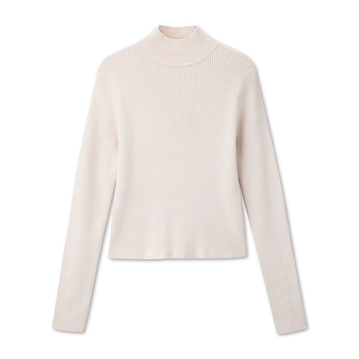 首元に沿うボトルネックが顔周りをすっきり見せてくれるのも◎