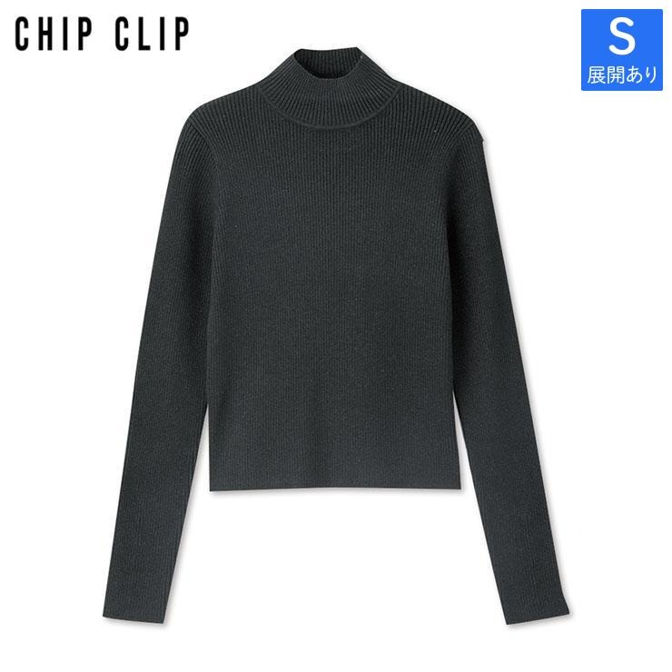 レディース【S~L】 袖口ボタンハイネックリブニットプルオーバー(CHIP CLIP)