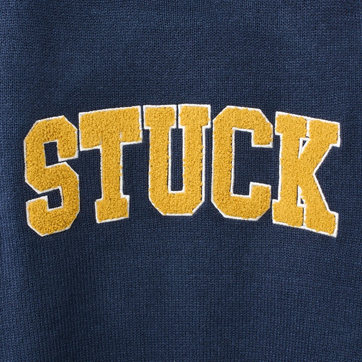ロゴがサガラ刺しゅうになったニットプルオーバーです。