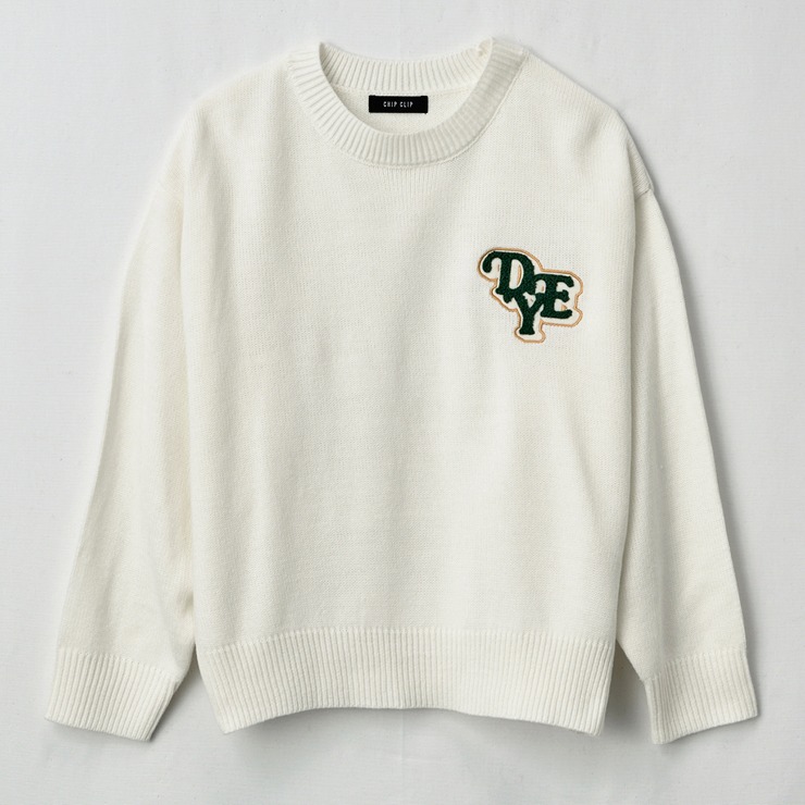 ロゴがサガラ刺しゅうになったニットプルオーバーです。