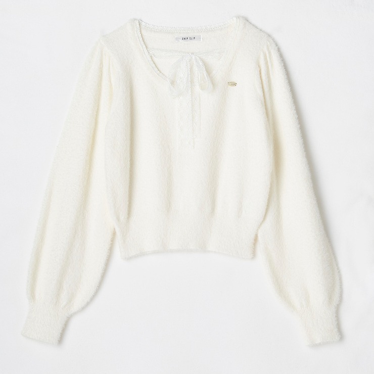 ふわふわのシャギー素材が女の子らしさを引き立てるガーリーニット。