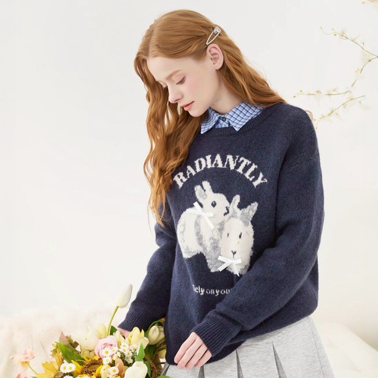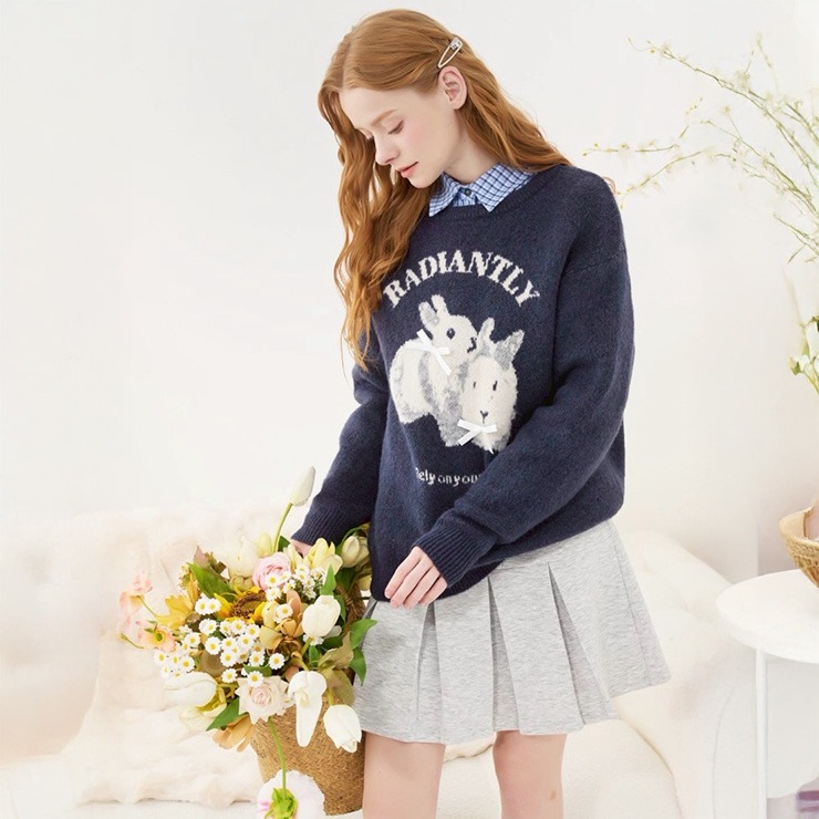うさぎグラフィックが入ったニットプルオーバーです♪