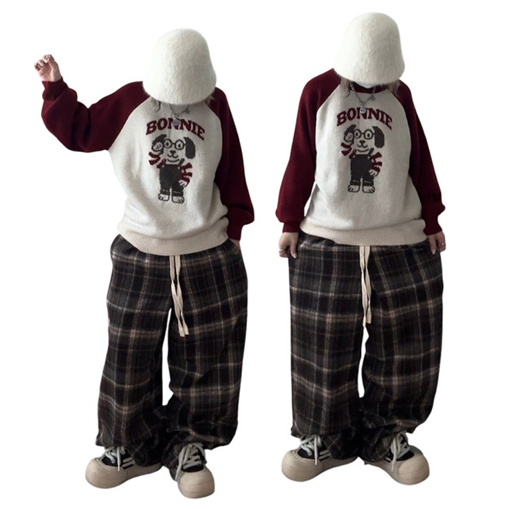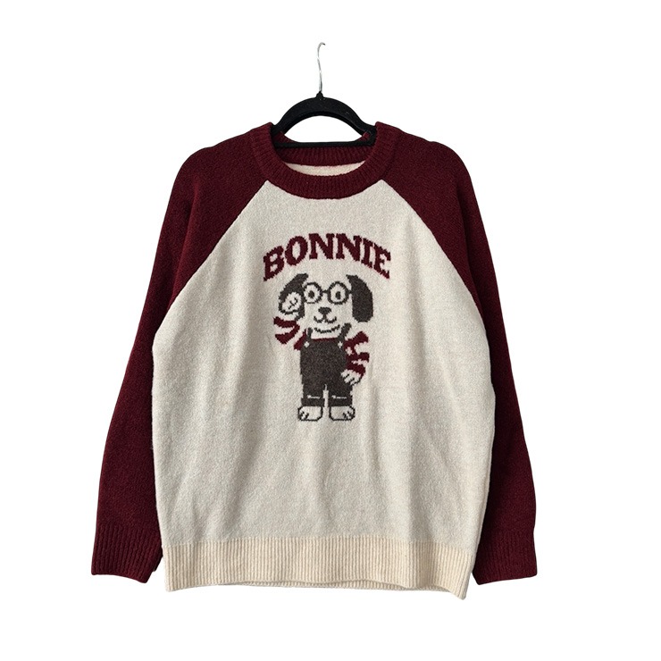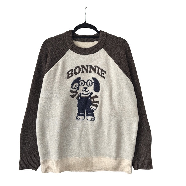 いぬのイラストが施されているラグランニットプルオーバーです!