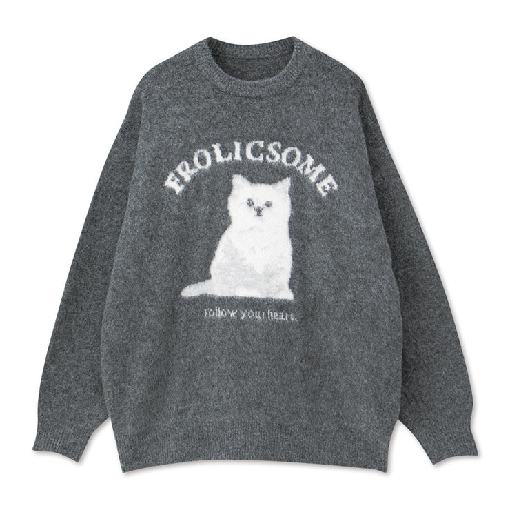 フロントのロゴが映える、ネコのジャガードニットでインパクト抜群の1着◎