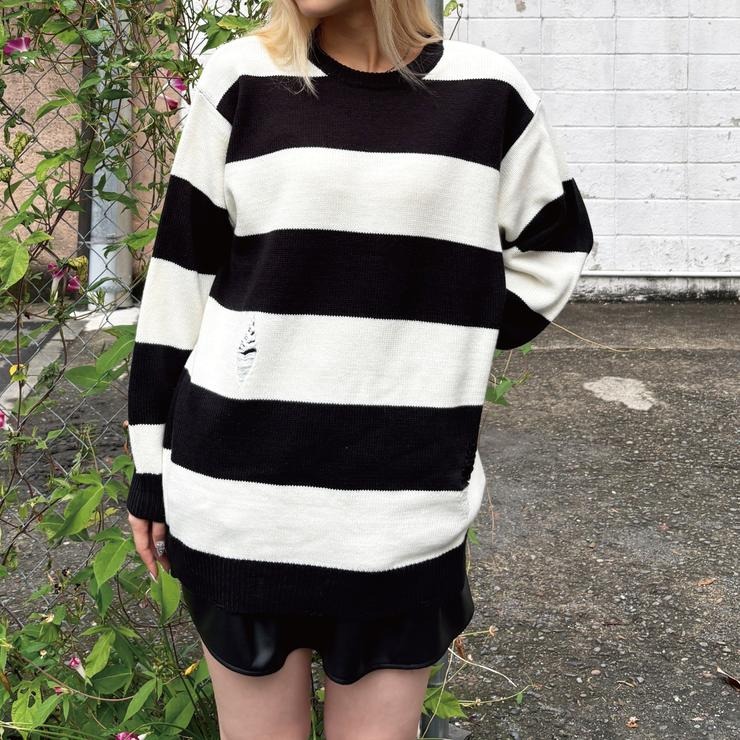 ボーダーにダメージ加工が施されたトレンド感抜群の1着。