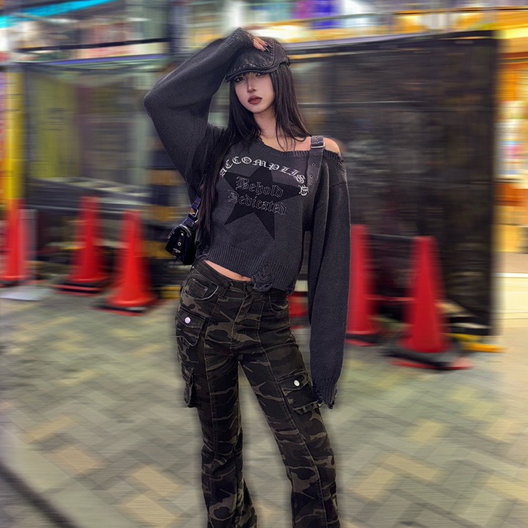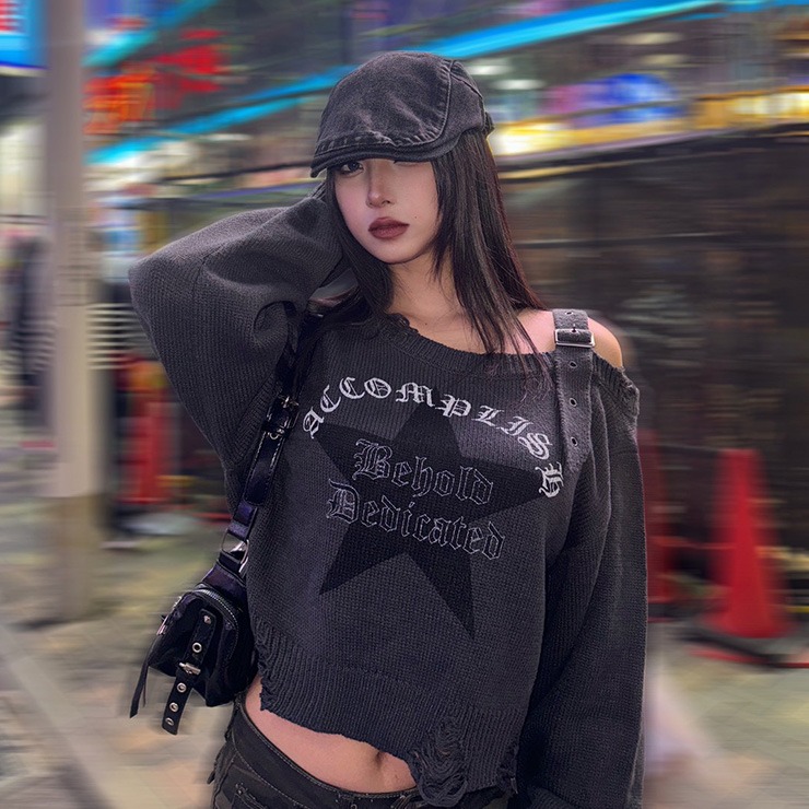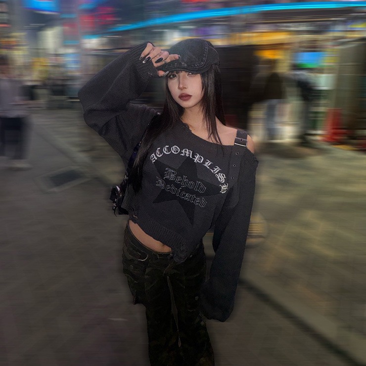 ダメージ加工が施されたショート肩ベルトニットプルオーバーです!